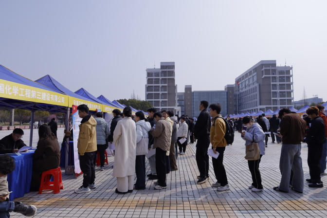 312日上午,学校在图书馆西侧广场开展合肥市、蚌埠市、滁州市、淮北市四市组团招聘会。本次招聘会共有76家企业进校选聘毕业生,提供岗位2500余个。四市人社部门相关负责同志,学校党委学生工作部负责同志、各二级学院党政负责同志,全体毕业班辅导员以及2026届毕业生参会。