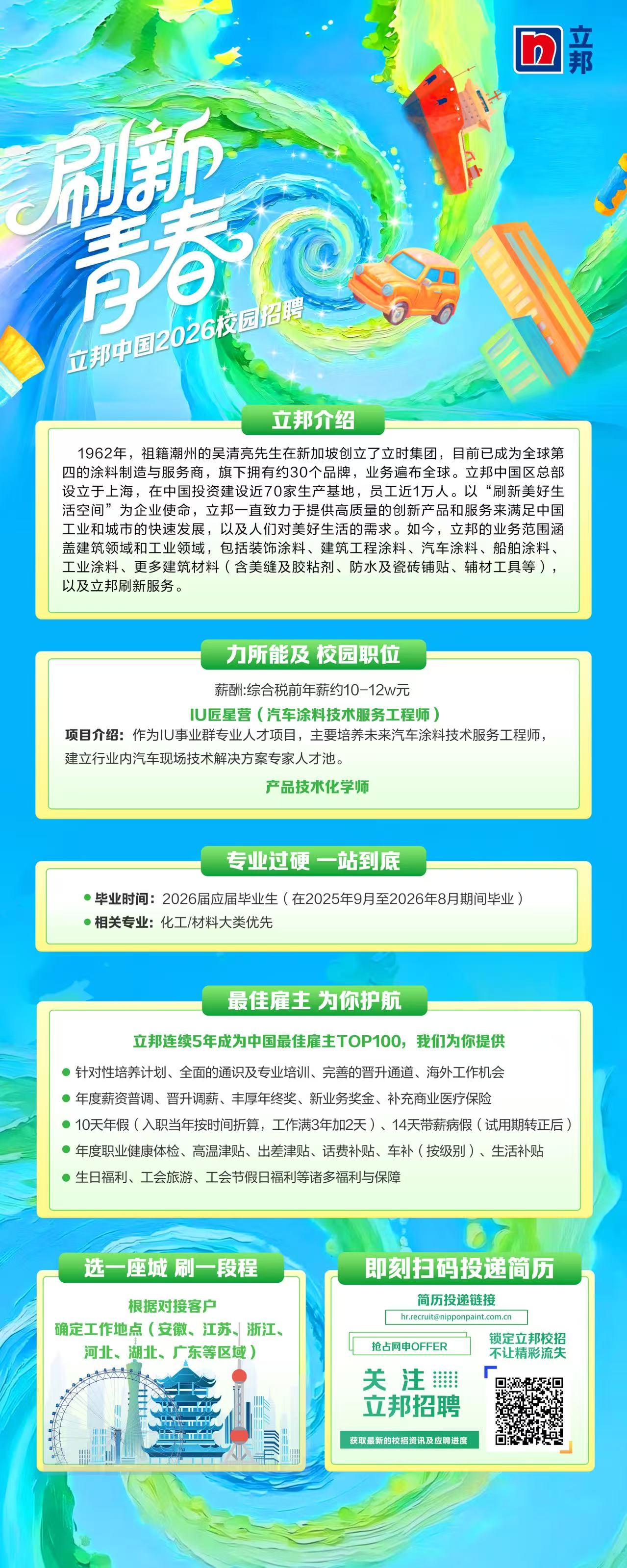 立邦连续5年成为中国最佳雇主TOP100,我们为你提供: