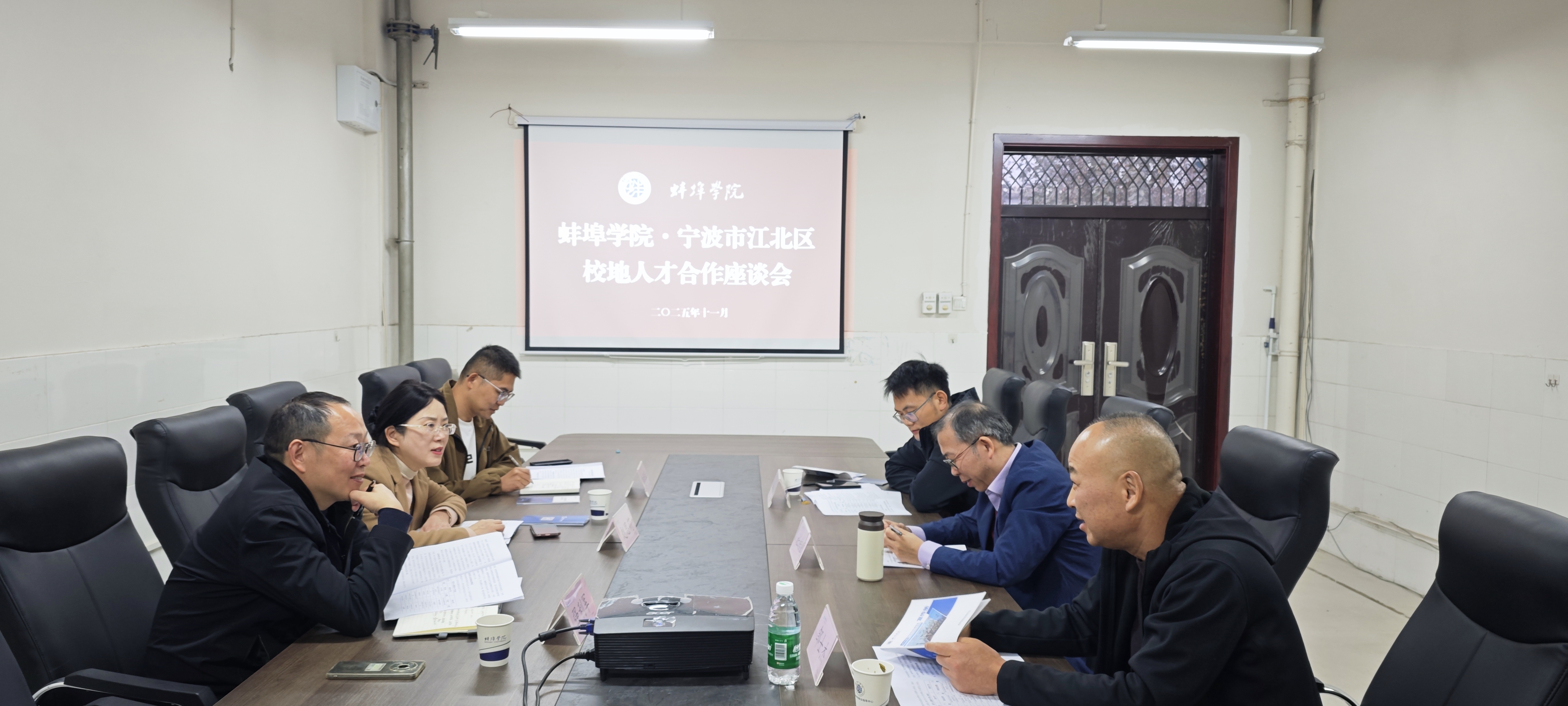 座谈会上,赵思莉对杜传鹏一行表示热烈的欢迎。她简要介绍学校概括,蚌埠学院是一所以工为主,多学科协调发展的省属普通本科高校。坚持“地方性、应用型、数智化”办学定位,持续深化产教融合协同育人培养模式改革,不断深入行业企业,共建产业学院、实验实训中心。坚持政产学研互融共进,深度融入区域经济社会发展,2026届毕业生4344人,涵盖48个毕业生专业,理工科专业优势明显,与江北区产业格局高度契合。杜传鹏介绍江北区情况。他说,宁波区位优势明显,是长三角南翼经济中心。江北区城市化率达86.6%,地区生产总值破千亿。坚持实施先进制造业和现代服务业 “双轮驱动”,单项冠军企业总数达12家,国家级专精特新“小巨人”企业数达36家,上市企业10家。地区区位优势明显、科创实力突出,环境优质高效,是宜居宜业的好去处,特别欢迎蚌埠学院学子的加入。校地双方一致表示,下一步将常来常往,密切人才需求对接,强化校园招聘力度,并适时开展“访企拓岗促就业”行动。