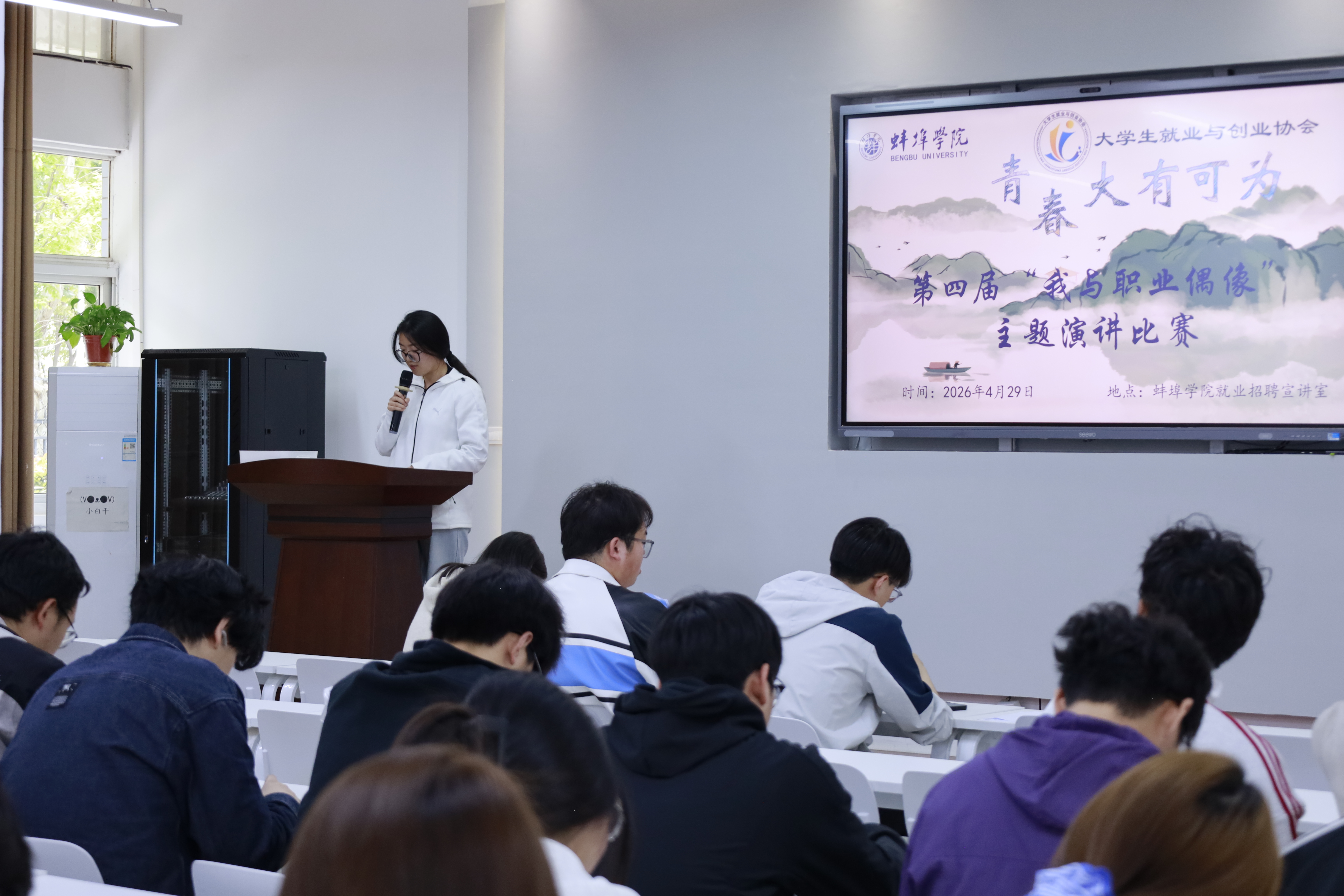 4月29日中午,由蚌埠学院大学生就业与创业协会主办、演讲与口才协会协办的“我与职业偶像”主题演讲比赛决赛,在就业招聘宣讲室顺利举行。大学生就业与创业协会会长许宁远、演讲与口才协会会长缪洁慧及第十九届摄影协会会长史江龙担任评委,两协会全体会员共同观摩比赛。